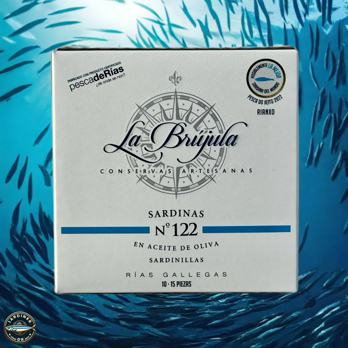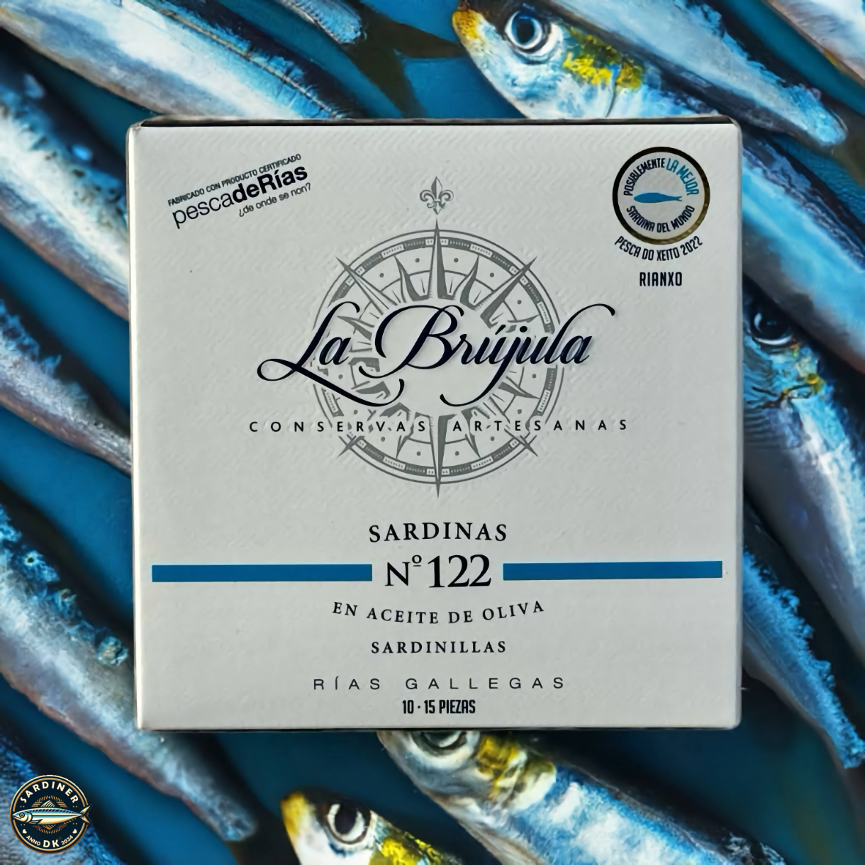 La Brújula10-15 Små sardiner i røget ekstra jomfruolivenolie - 2022 - 130 g
